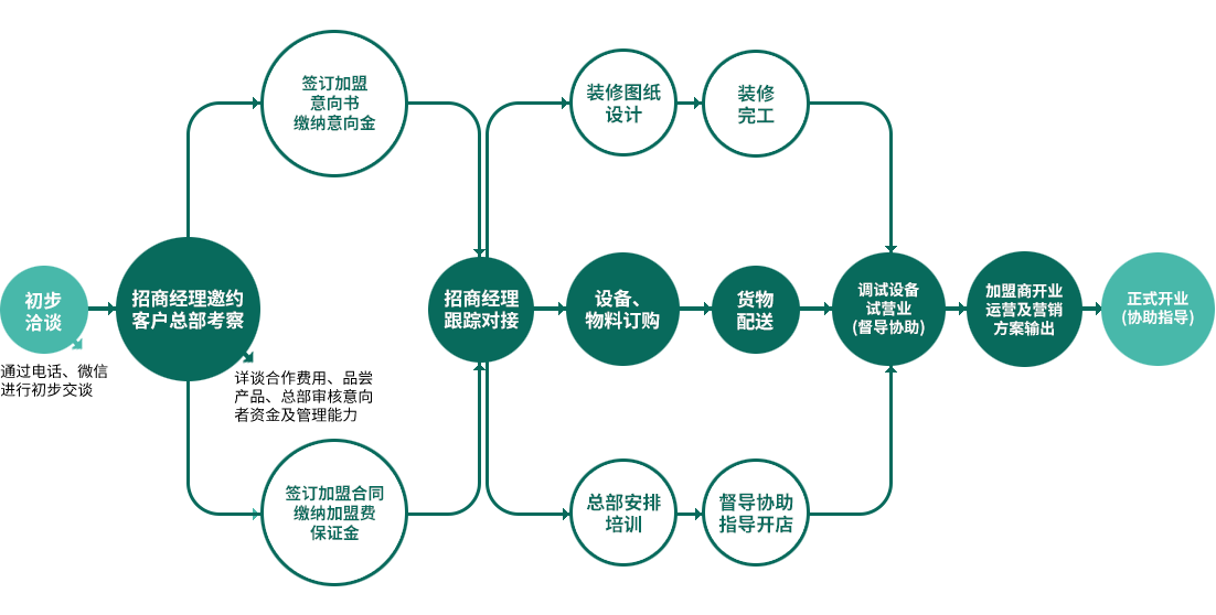 公司總部下設店鋪督導,一年365天,天天巡回在各地代理區域,協助各地投資者進行渠道擴充、店鋪管理,提高經營水平,提升業(yè)績